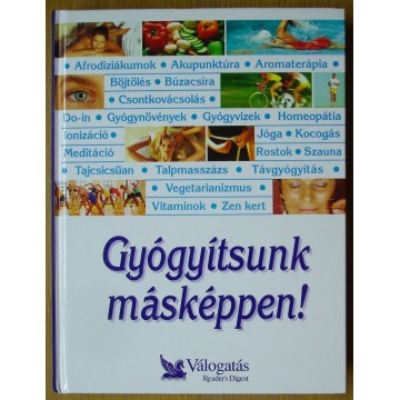 Gyógyítsunk másképpen! Readers Digest 1997, Budapest Afrodiziákumok, akupunktúra, aromaterápia, böjtölés, búzacsíra, csontkovácsolás, do-in, gyógynövények, gyógyvizek, homeopátia, ionizáció, jóga, kocogás, meditáció, rostok, szauna, tajcsicsüan, talpmasszázs, távgyógyítás, vegetarianizmus, vitaminok, zen kert, stb. |