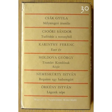 Magyar krónika Magvető - Szépirodalmi 1978, Budapest Tartalom: Csák Gyula: Mélytengeri áramlás; Csoóri Sándor: Tudósítás a toronyból; Karinthy Ferenc: Ezer év; Moldova György: Tisztelet Komlónak; Nemeskürty István: Requiem egy hadseregért; Örkény István: Lágerek népe |