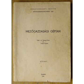 Varga Frigyes - Tószegi Péter, dr. Mezőgazdasági géptan Agrártudományi Egyetem Mezőgazdasági Kar 1962, Gödöllő |